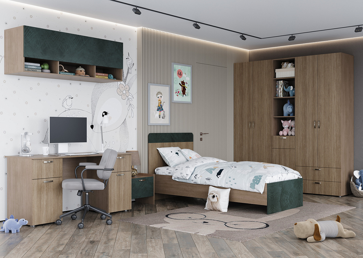 • Фасад - ЛДСП Кадена Вуд; МДФ плёнка ПВХ Палм Грин, толщина 300 микрон МКМ (с праймером)